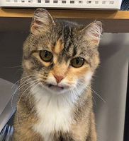 Pumpkin joined the staff of MVVS in January of 2025. She was a stray barn cat who was brought to us so that we could find her a permanent home. One of our technicians decided to take her home, but Pumpkin decided that it would be much more fun to stay at the Le Sueur clinic and keep an eye on all of us.